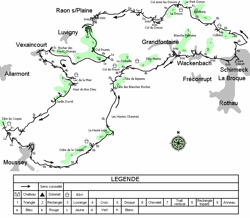 | Sympa, et en + ça passe tout prés... par contre, arrivé au dessus du lac de la maix, il reste sur les crétes jusqu'au Donon, ou il descend dans la vallée |
